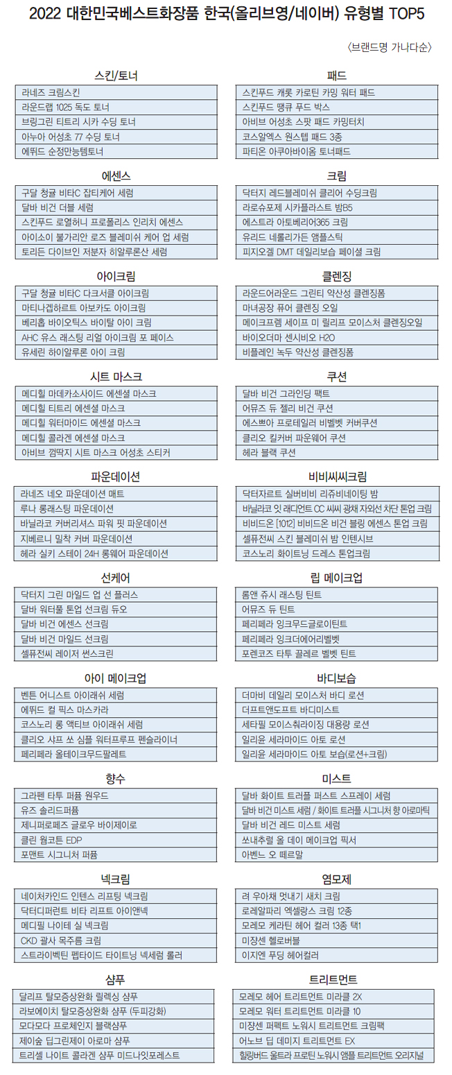 2022 대한민국 베스트 화장품 - 한국·중국·일본