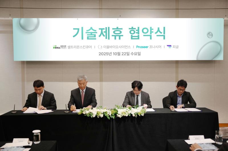 이번 협약은 셀트리온스킨큐어의 독자적인 바이오 기술력과 이을바이오사이언스의 임상 기반 생명과학 연구 및 제조 노하우, 스타트업 기업인 프나시어의 약물 전달 강화 기술, 피글의 콜드 플라즈마 장비 기술력을 결합해 피부 솔루션을 제공하고 제품 개선과 임상 검증 등 다양한 분야에서 전략적 협력 체계를 구축하기 위해 추진됐다.