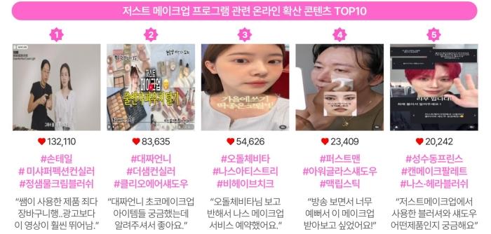 그 결과, 10월에는 구순염 증상에 대한 이슈는 완화되고, 환불 후기 및 브랜드 이슈 대응에 대한 평가가 이어졌으며, 신제품 출시와 협업 소식으로 관심이 분산됐다. *출처=뉴엔AI 뷰티리포트 2025년 11월호 쿠팡플레이 뷰티 예능 ‘저스트 메이크업’은 넷플릭스 ‘흑백요리사’를 연출한 PD가 제작을 맡고, 이효리의 MC 출연과 서옥‧정샘물 등 뷰티 전문가들의 심사위원 라인업으로 소비자들의 기대감이 높았다.