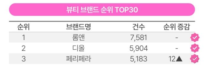 Top30 브랜드 중 컬러그램, 바이레도, 어바웃톤의 랭킹 상승이 두드러졌다. 컬러그램은 한 달간 잔망루피 콜라보 제품을 중심으로 언급이 꾸준히 이어졌다.