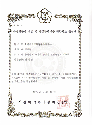 오마샤리프화장품 관계자는 “식약처 화장품 GMP 인증과 ISO 22716 국제인증 획득을 계기로 화장품 제조와 품질관리에 대한 고객의 신뢰도와 만족도를 극대화할 수 있게 됐다”며 “동시에 대외 경쟁력을 강화해 유럽을 비롯한 전 세계에 화장품 수출 증대와 신시장 개척을 기대하고 있다”고 밝혔다.