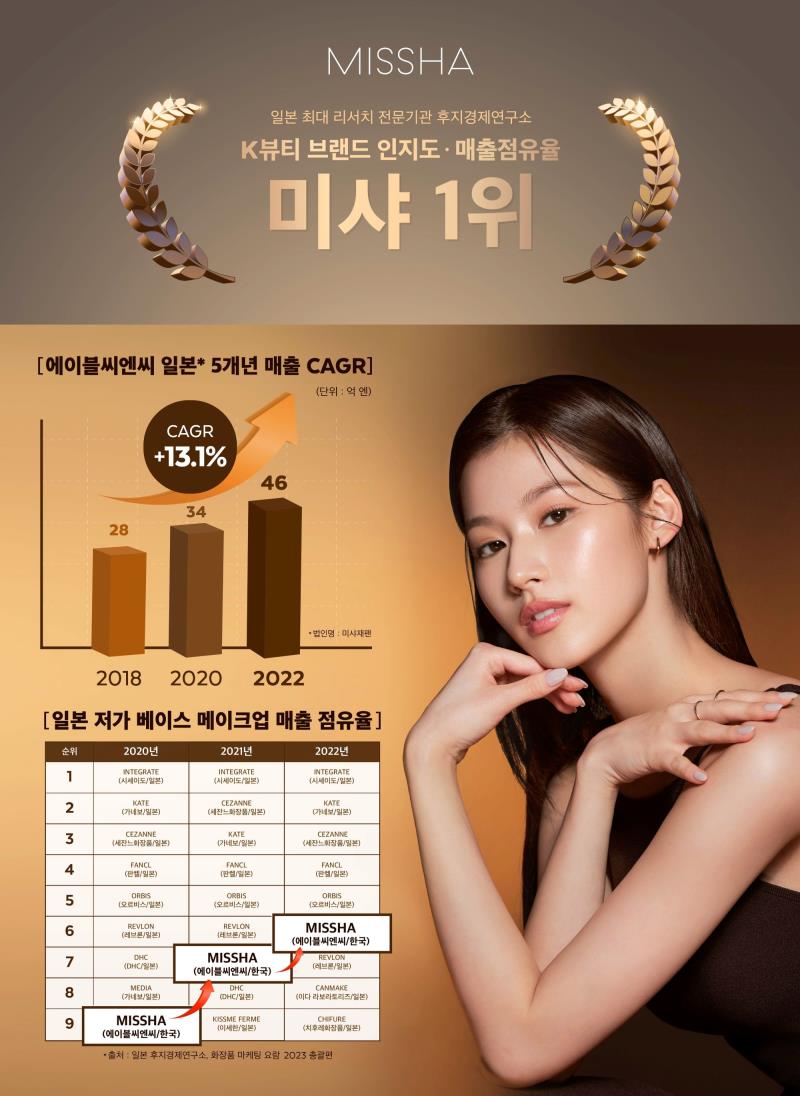 특히 에이블씨엔씨의 화장품 브랜드 미샤가 일본에서 한국 화장품 브랜드 중 인지도와 매출액 순위에서 모두 1