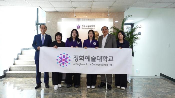 (좌측부터 정화예대 허용무 총괄부총장, 최은정 교수, 김민슬 학생, 윤재희 학생, 한기정 총장, 장선엽 교수)
