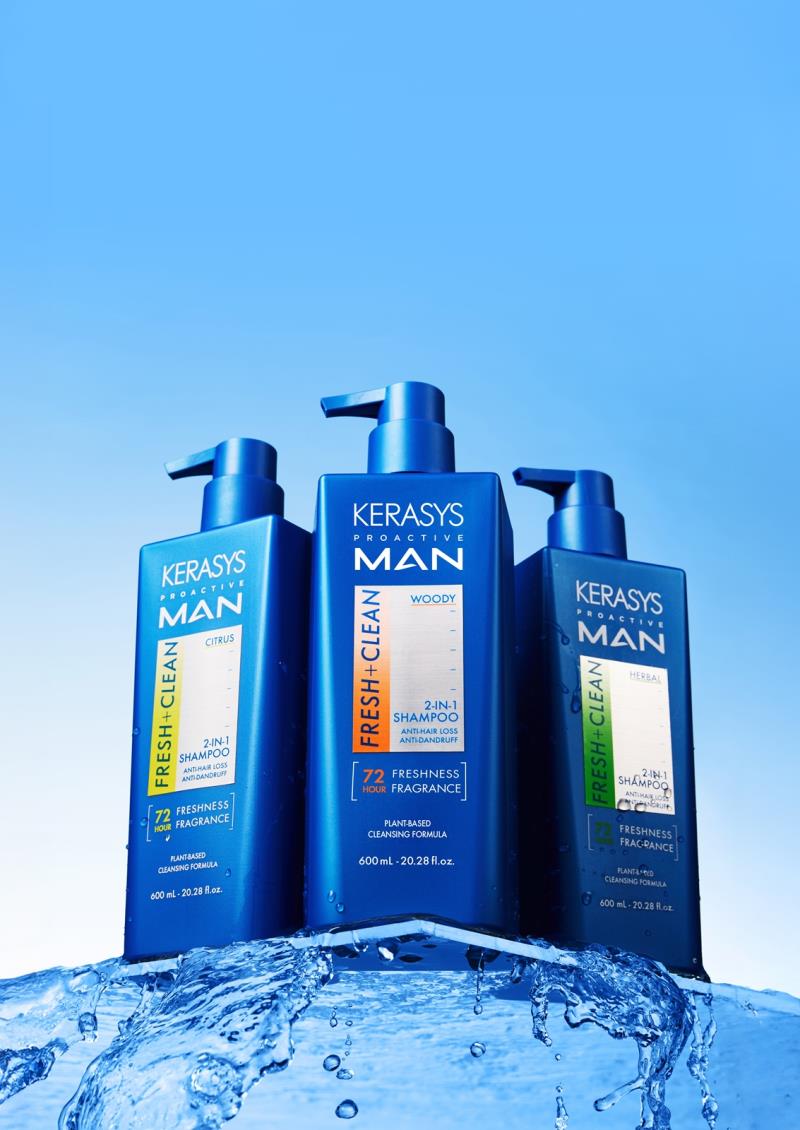 케라시스 프로액티브 맨 2in1 샴푸는 원하는 향에 따라 선택해 사용할 수 있도록 △두피에 상쾌함을 더해주는 ‘허벌’ △묵직하고 차분한 향의 ‘우디’ △청량함을 선사하는 ‘시트러스’ 등 3종으로 구성됐다.