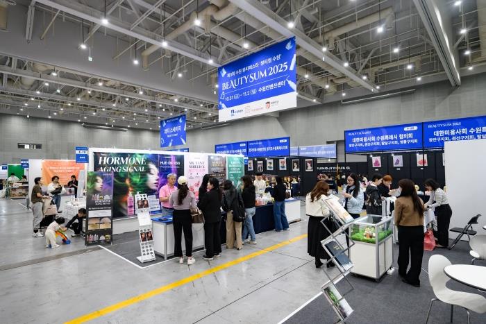 개막식에는 조신행 대한화장품산업연구원 원장, 기근서 경기화장품협의회 명예회장, 대한이용사회‧대한미용사회‧한국피부미용사회 수원시 지회 및 지부 관계자 등이 내빈으로 참석해 자리를 빛냈다. 2025 뷰티썸 수원 대한화장품산업연구원 부스 앞에서 이재준 수원시장(왼쪽에서 여섯번째)과 조신행 대한화장품산업연구원장(왼쪽에서 다섯번째) [사진제공=수원시]이번 전시를 수원시와 공동주관한 메쎄이상은 이번 행사를 통해 K-뷰티 산업에서의 주도적 입지를 한층 공고히 할 계획이다. 2025 뷰티썸 수원 전시 부스 전경 [사진제공=수원시]메쎄이상은 ‘뷰티썸 인디아’와 ‘오송화장품뷰티산업엑스포’ 행사 대행을 성공적으로 수행하며 국내외 뷰티 전시 시장에서 영향력을 넓혀왔다. 이번 뷰티썸 수원 2025는 메쎄이상이 주관한 세 번째 뷰티 전문 엑스포다.