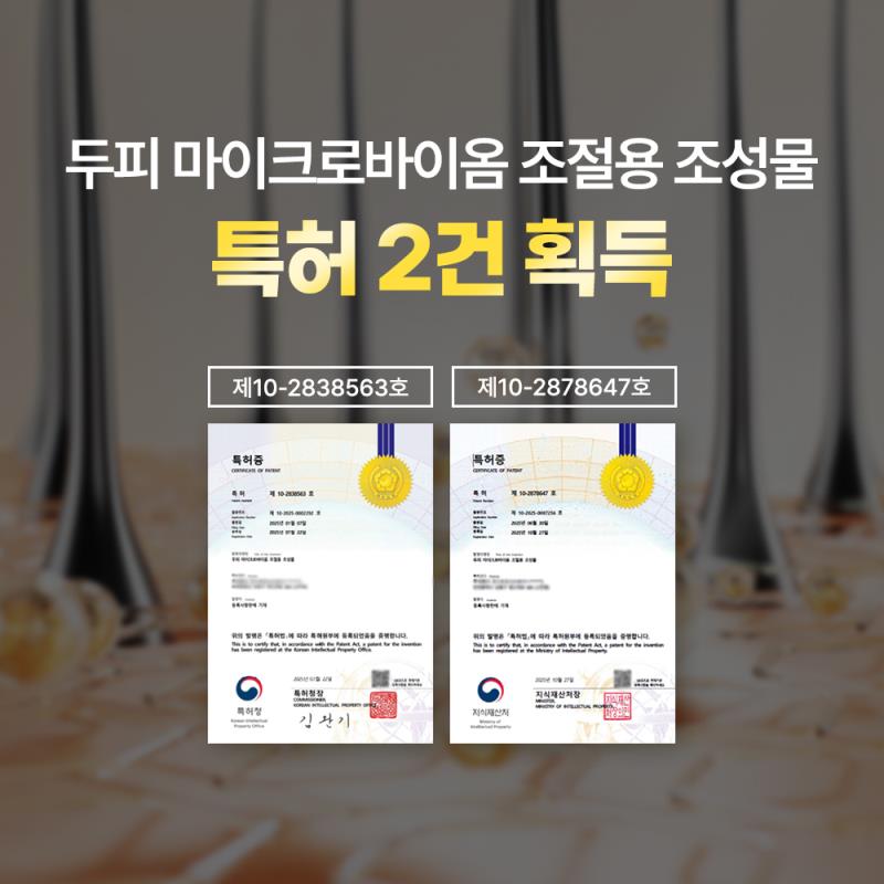 [CMN] KT&G계열사 코스모코스(대표 이정훈)가 ‘두피 마이크로바이옴 조절용 조성물’에 대한 핵심 특허 2건(제10-2838563호, 제10-2878647호)을 연달아 확보하며 차세대 두피 케어 시장의 기술 주도권을 입증했다.