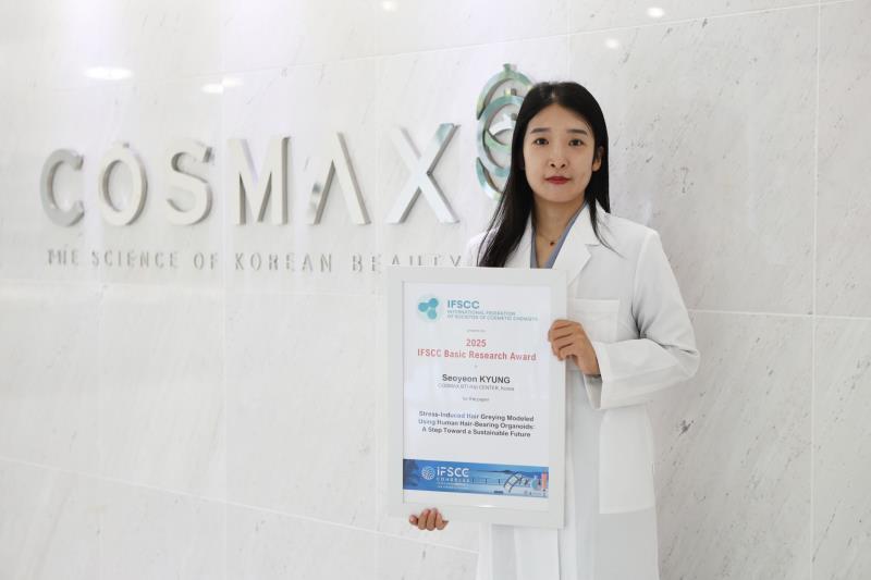 한국 최초 본상 수상의 영예는 경서연 코스맥스 R&I(Research&Innovation)센터 책임연구원에게 돌아갔다. 경서연 책임연구원은 세계 최초로 모낭 오가노이드(인체 모사체)를 활용해 스트레스에 의한 백발(새치) 형성 메커니즘을 구현한 연구 결과를 공개했다. 이는 향후 맞춤형 항노화 제품 개발을 위한 포석이 될 전망이다.